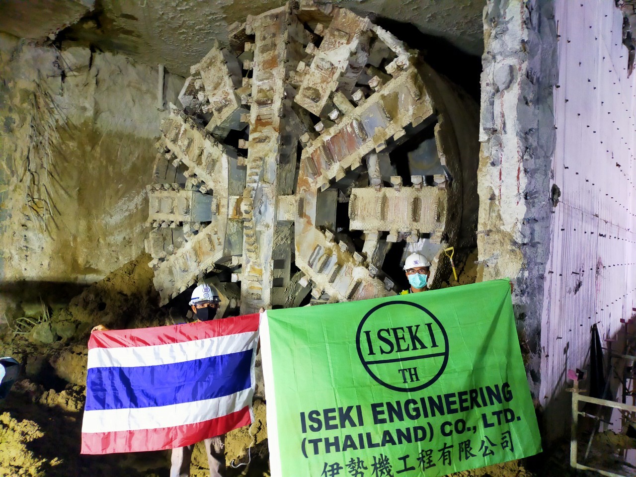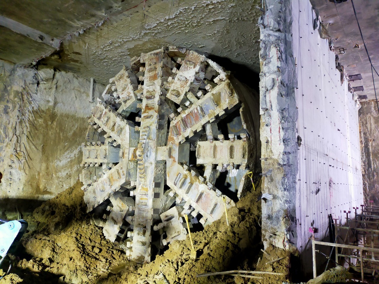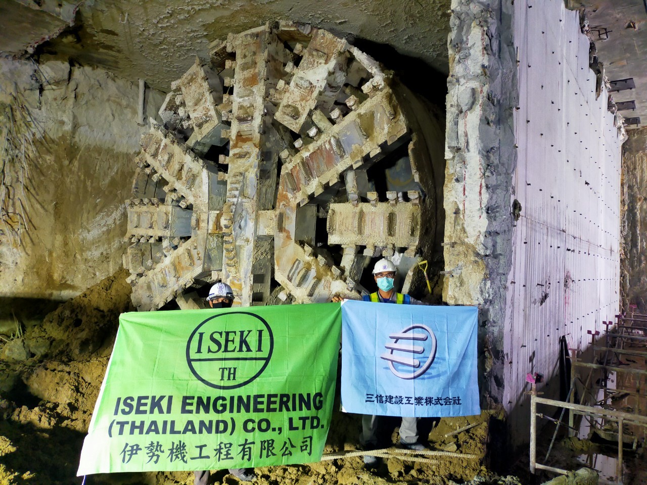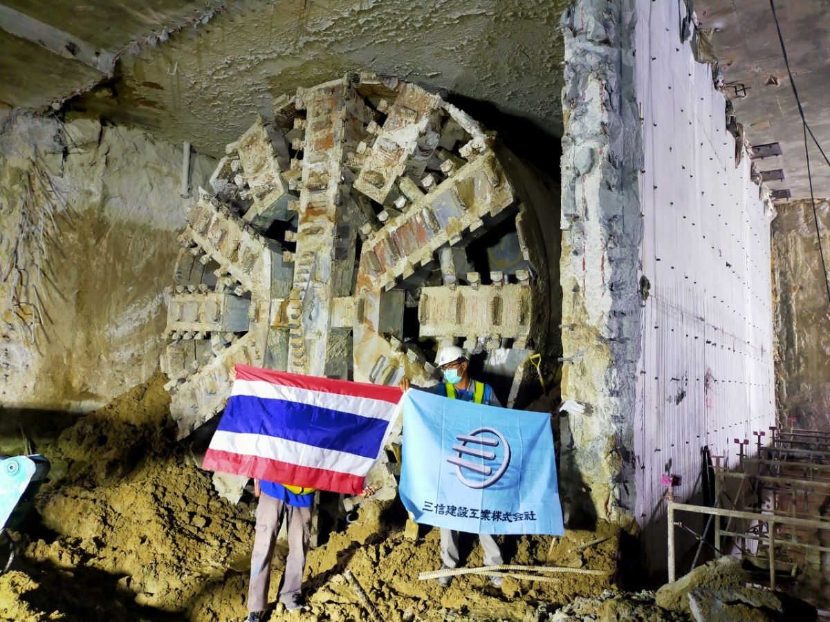 泰國曼谷捷運橘線E02標,OR18站地盤改良工程完成後,潛盾機到達。